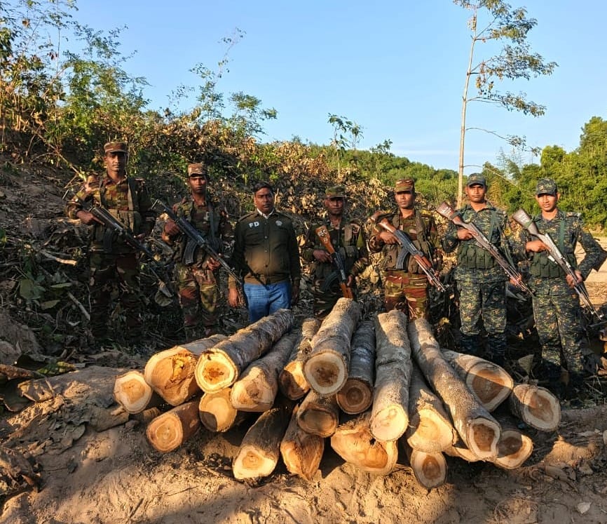 সেনাবাহিনীর অভিযানে অবৈধ সেগুন কাঠ জব্দ