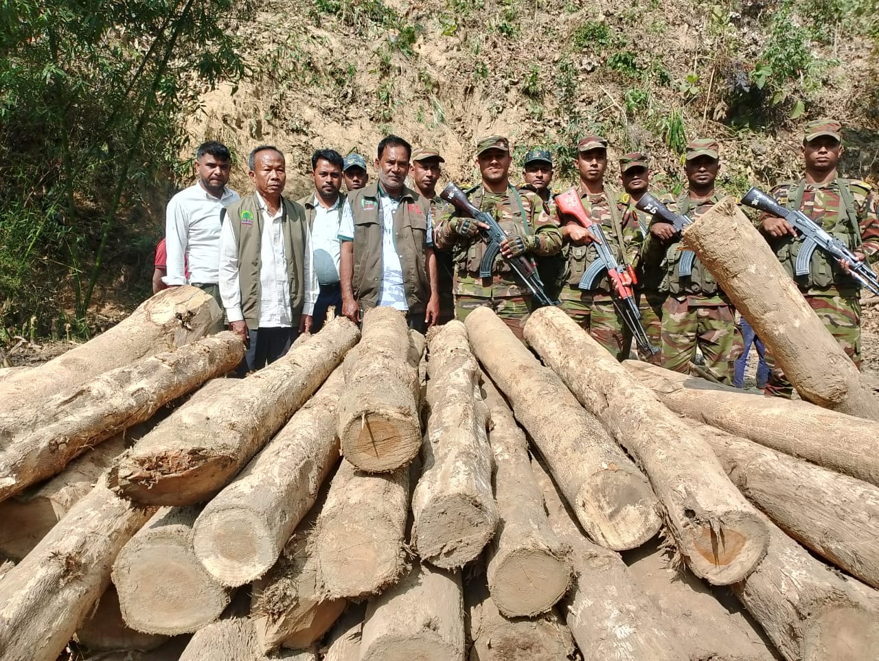 আলীকদম সেনা জোনের সফল অভিযানে মালিকবিহীন বিপুল পরিমাণ সেগুন কাঠ উদ্ধার