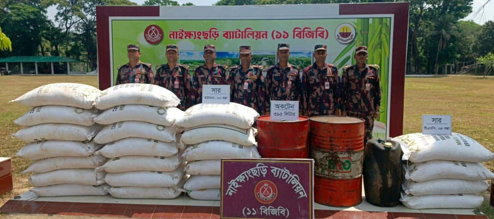 নাইক্ষ্যংছড়ি সীমান্তে বিজিবির সাঁড়াশি অভিযান পাচারের আগেই বিপুল অকটেন-সার জব্দ