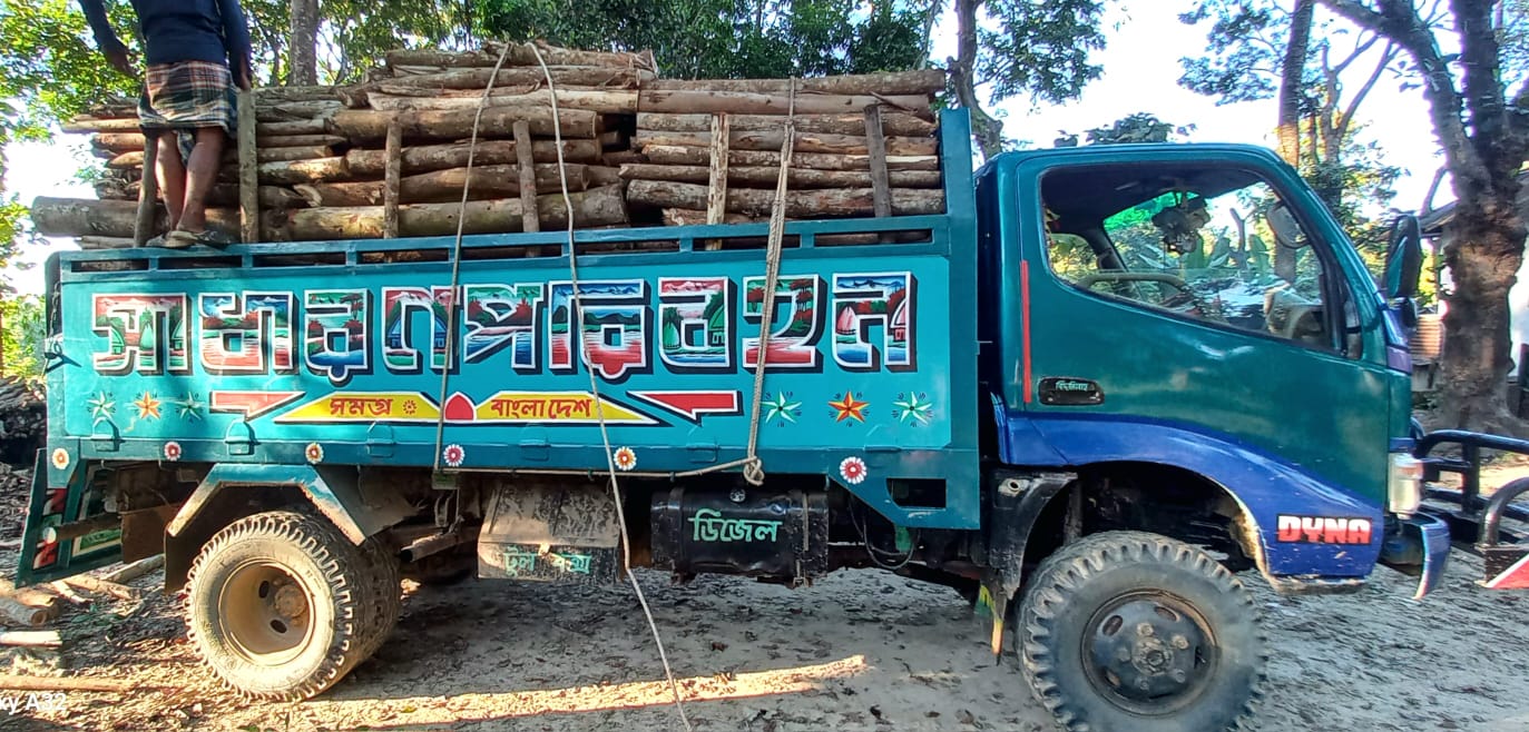 বান্দরবানে বন বিভাগের অভিযানে ট্রাকসহ অবৈধ জ্বালানীকাঠ জব্দ করা হয়েছে